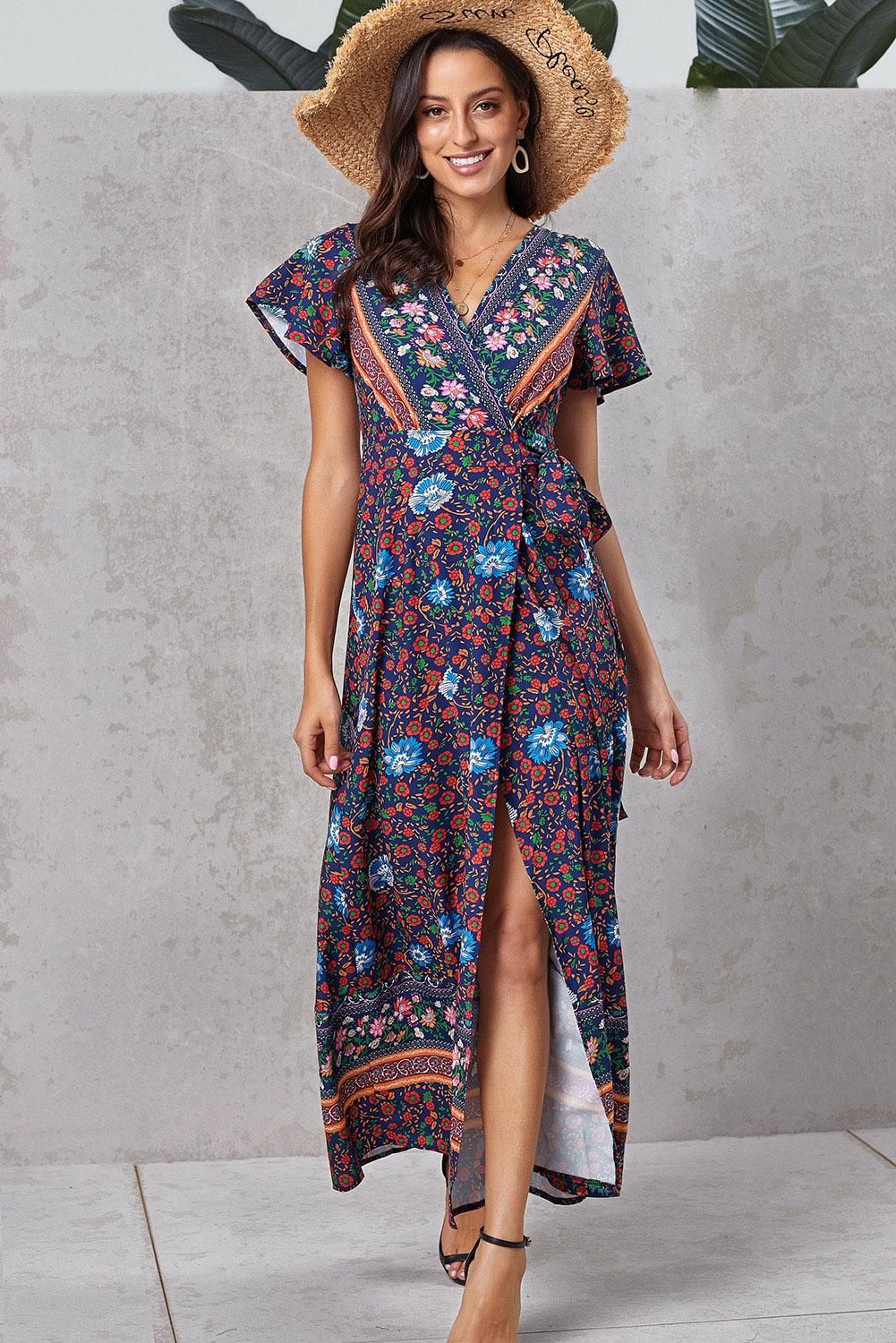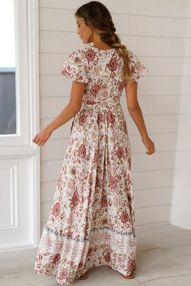 Wrapped bodice, sexy v neck, flutter capped sleeve