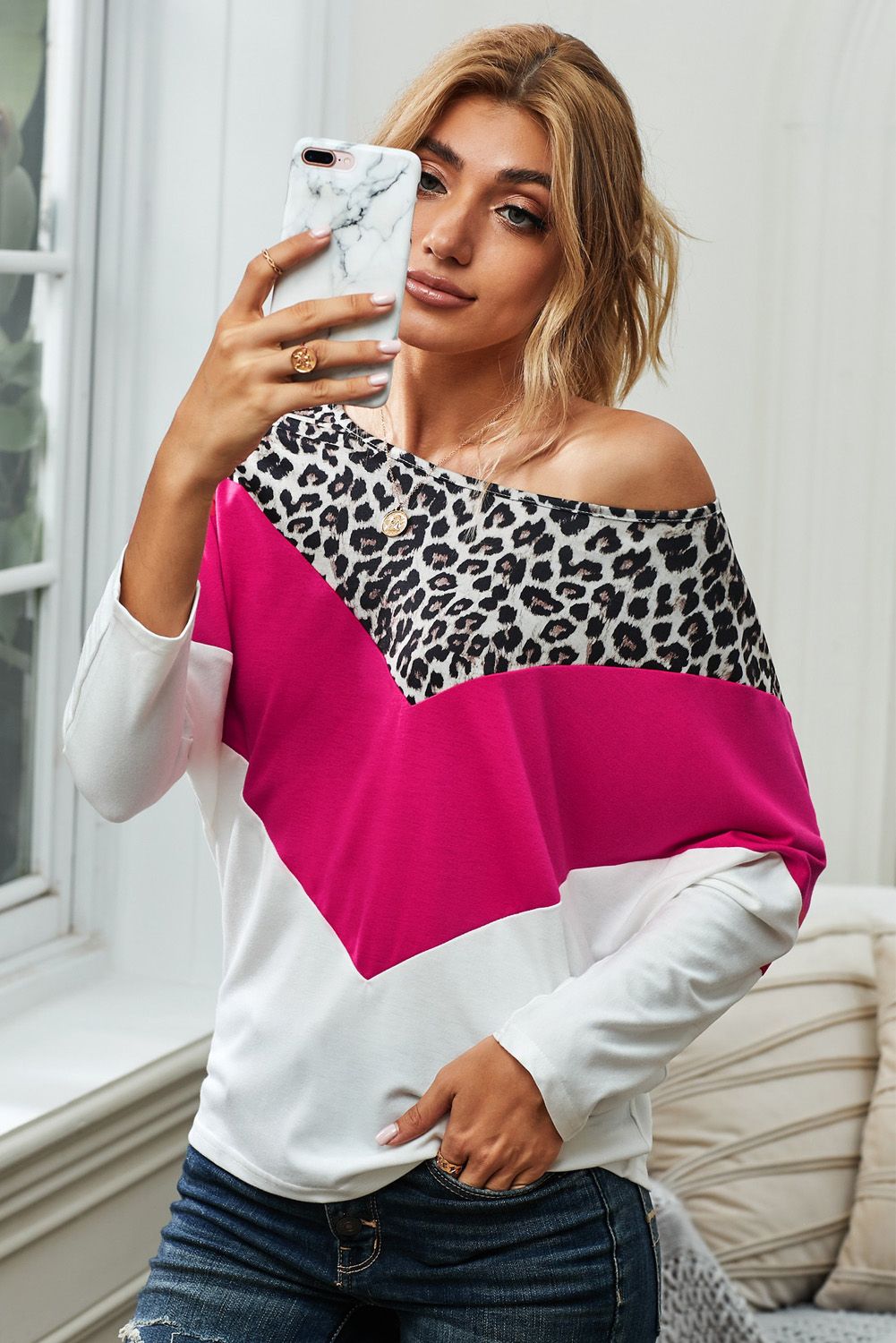 Wild free leopard print and colorblocks splicing