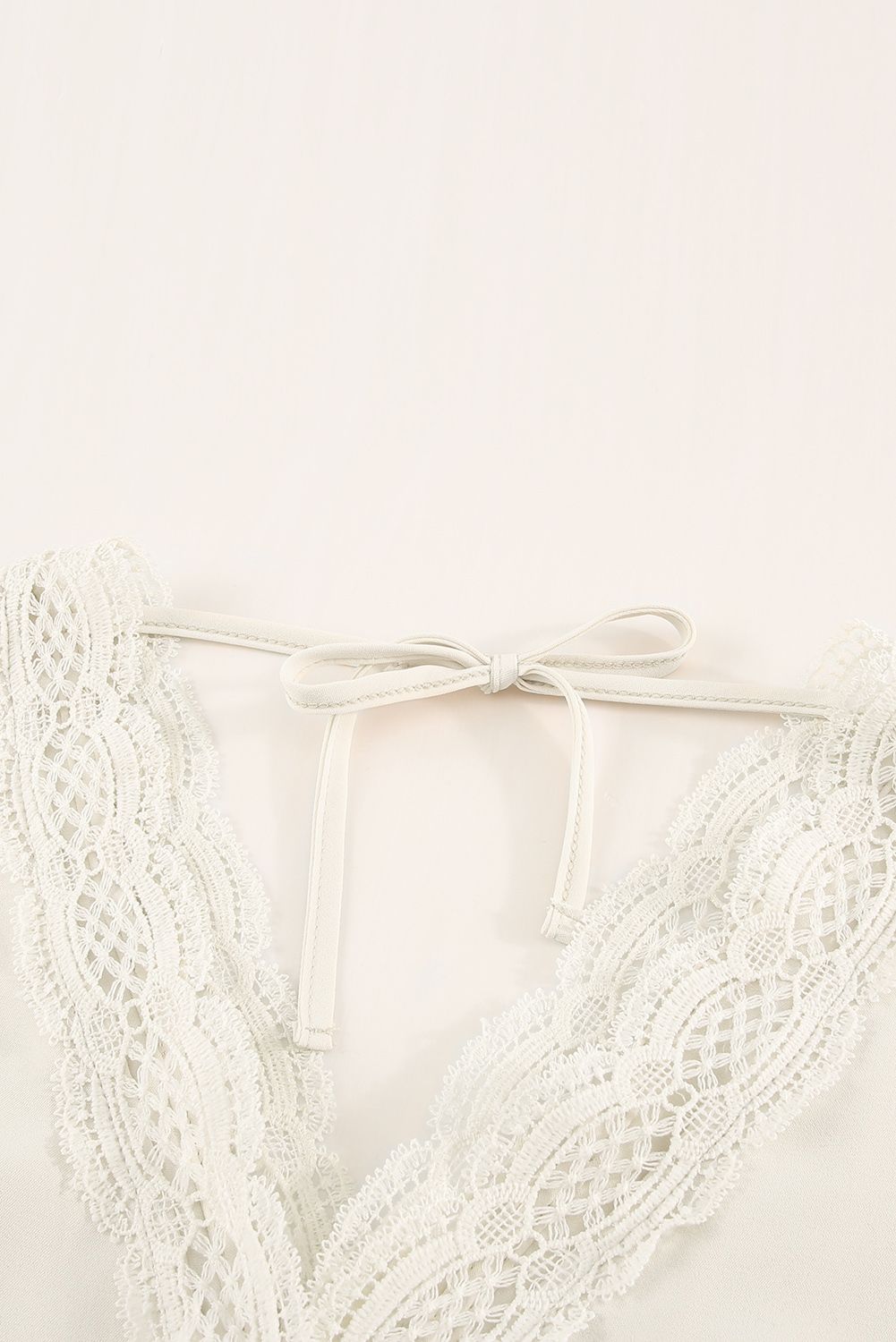Apricot Lace Splicing V Neck Short Sleeve Blouse