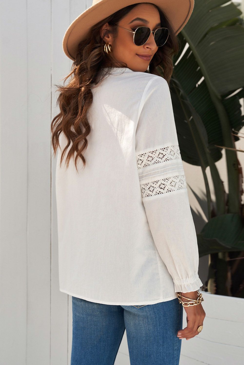Black Lace Crochet Button-up Long Sleeve Shirt