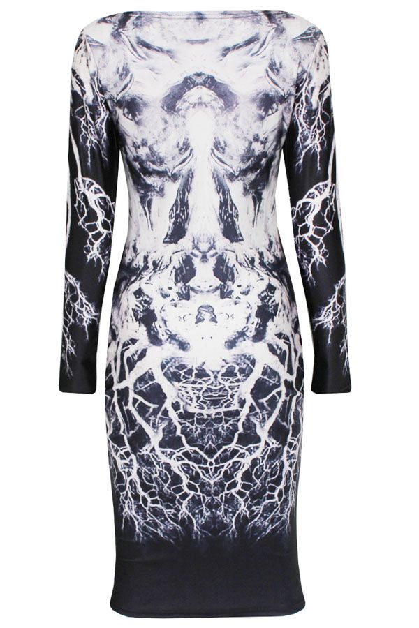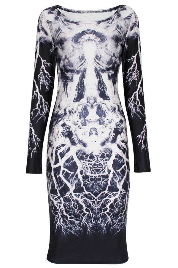 Body Flattering Long-sleeve Print Dress