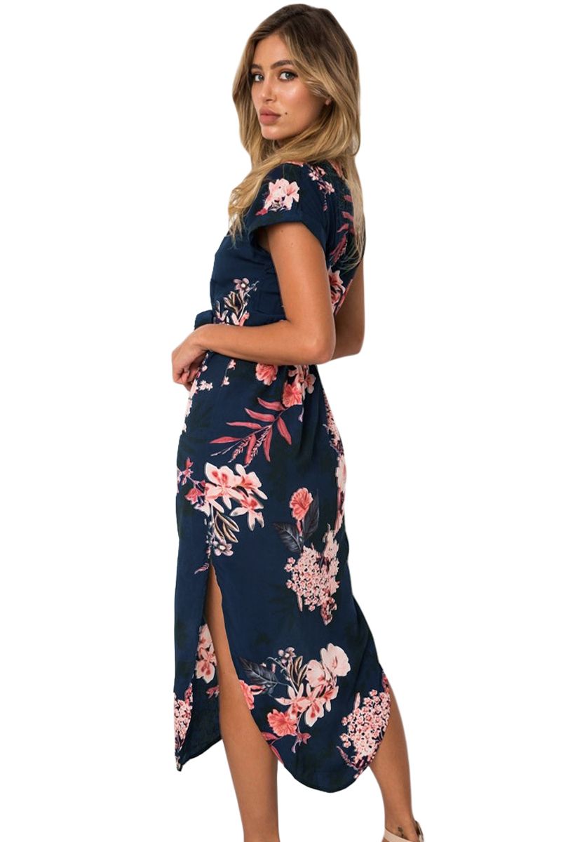 Navy Pink Floral Print Pencil Dress