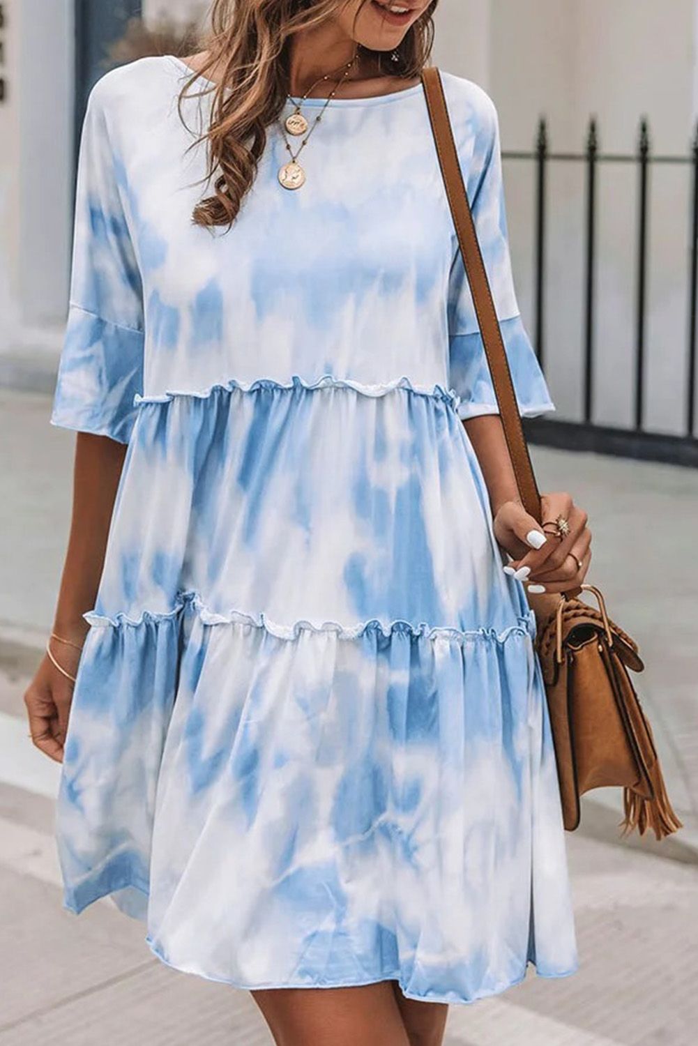 Loose fit silhouette with ruffled tiered detail